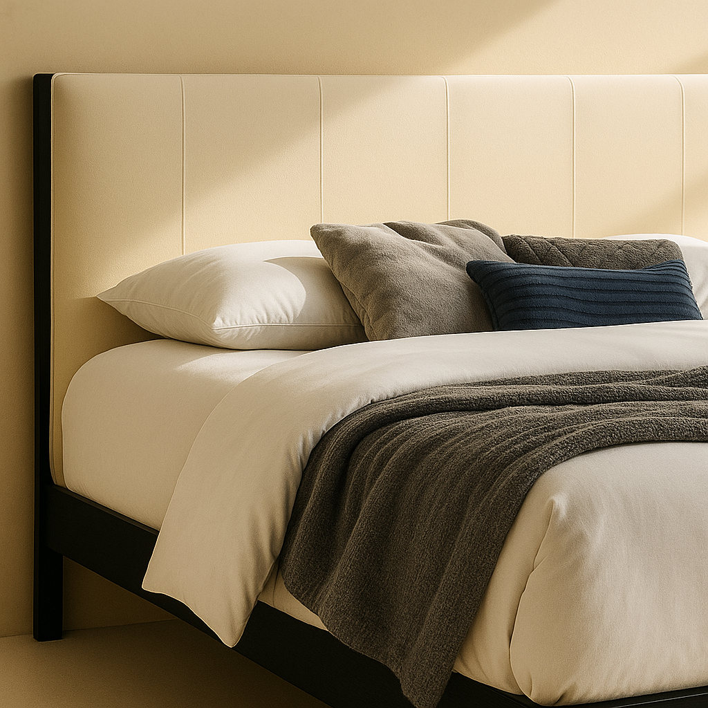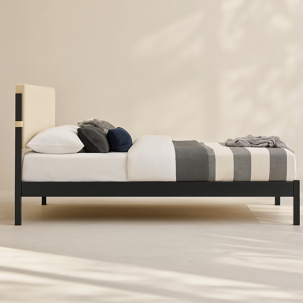The Abigail Vegan Leather Upholstered Bed brings modern sophistication and everyday comfort to your bedroom. Upholstered in premium vegan leather and available in multiple colour options, it features a sleek, padded headboard paired with a strong black-finish frame for lasting support. With overall dimensions of 79.5" W x 85.5" D x 43.75" H, this bed offers a balanced height and generous sleeping space. The fully slatted base provides reliable mattress support without the need for a box spring, making it a refined and practical choice for contemporary interiors.