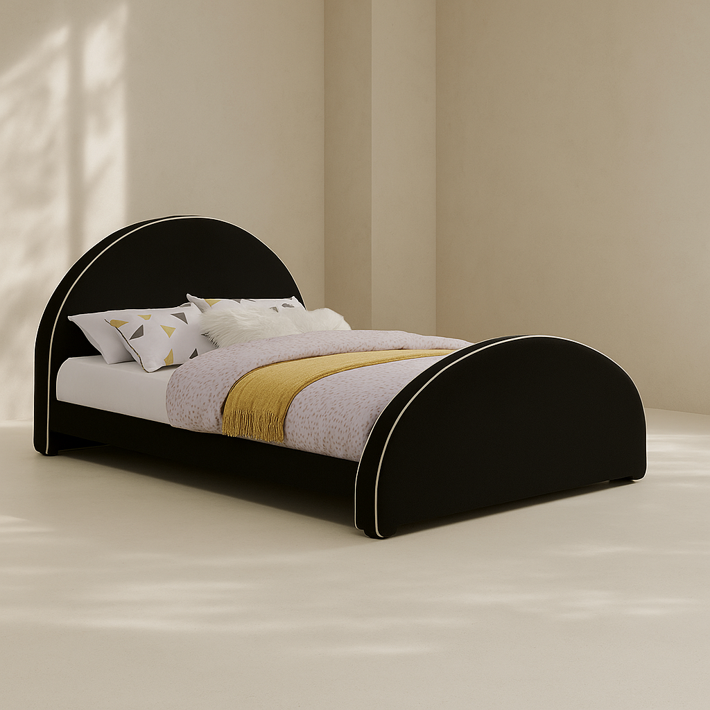 The Brody Velvet Upholstered Bed is designed to bring a modern, premium look to your bedroom while offering strong everyday comfort. Upholstered in soft velvet and available in multiple colour options, it features a distinctive arched panel headboard and footboard supported by a durable engineered wood frame, with solid side rails and sturdy legs for enhanced stability. With overall dimensions of 60.5" W x 83" D x 47.5" H, this bed provides ample sleeping space and a balanced height for a comfortable and supportive sleeping experience. The sturdy slatted base ensures proper mattress support without the need for a box spring, while the unique curved silhouette and contemporary design make it a perfect fit for modern, kids’, or stylish guest bedrooms. Customers love its solid build, plush velvet feel, and eye-catching yet functional design.