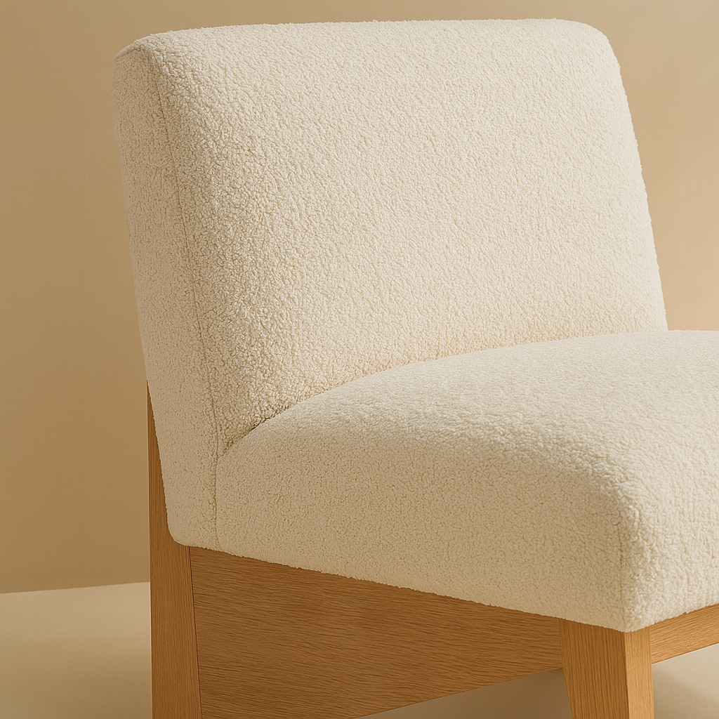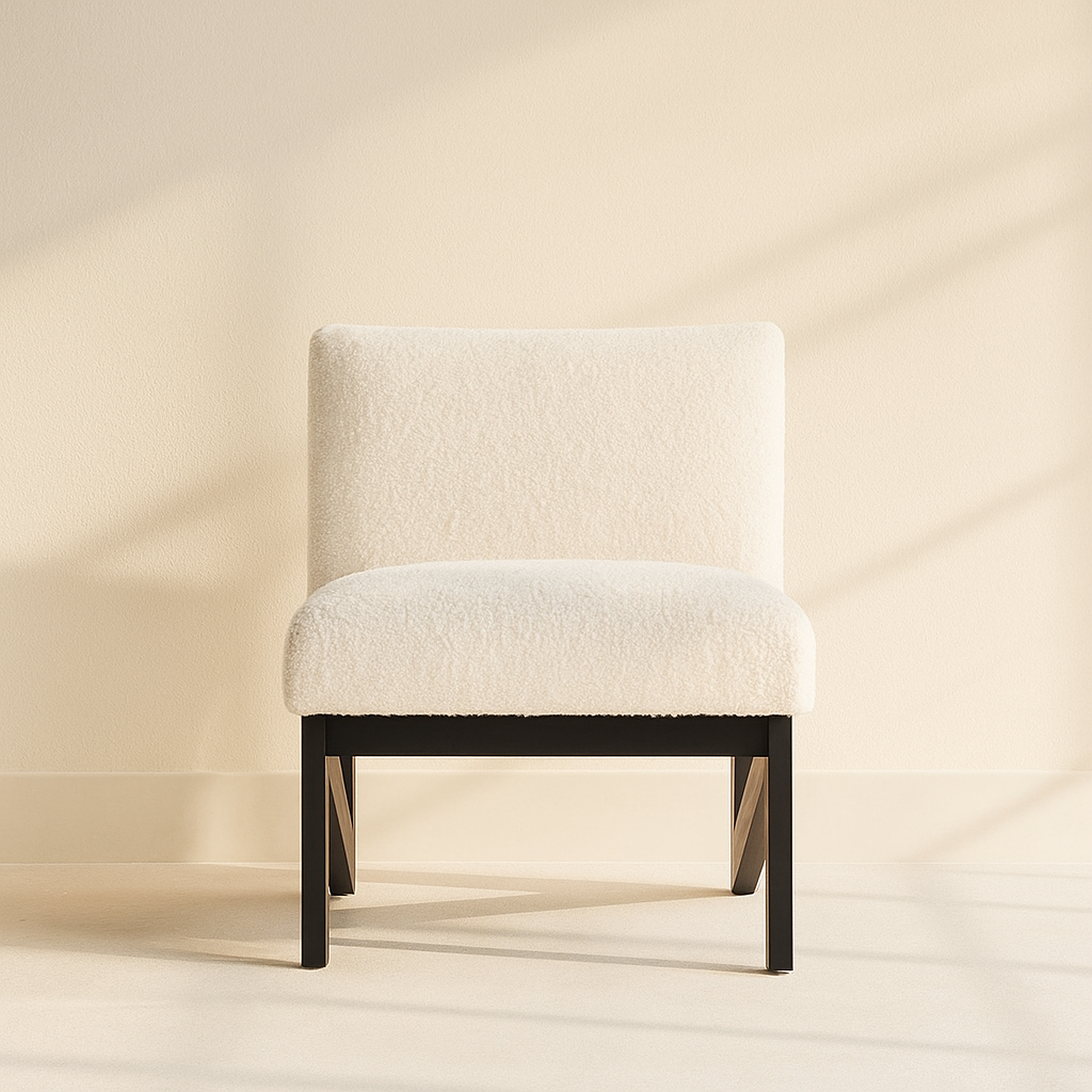 The Chapman Accent Chair brings modern comfort and subtle charm to any space. Wrapped in soft cream boucle fabric, this chair blends elegance with a relaxed profile, making it perfect for living rooms, bedrooms, or reading corners. The generously cushioned seat provides a cozy and supportive experience, while the open back design adds a touch of breezy lightness. Its solid wood legs introduce warmth and stability, effortlessly grounding the design. With clean lines and inviting texture, it’s an ideal fit for contemporary or minimalist interiors. Available in black wood and natural wood. Dimensions: 34" W x 31" D x 30" H