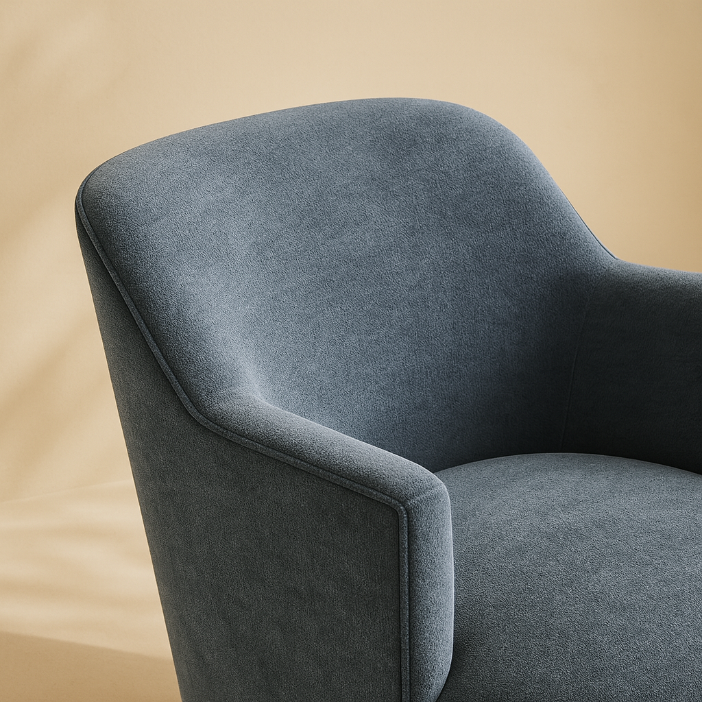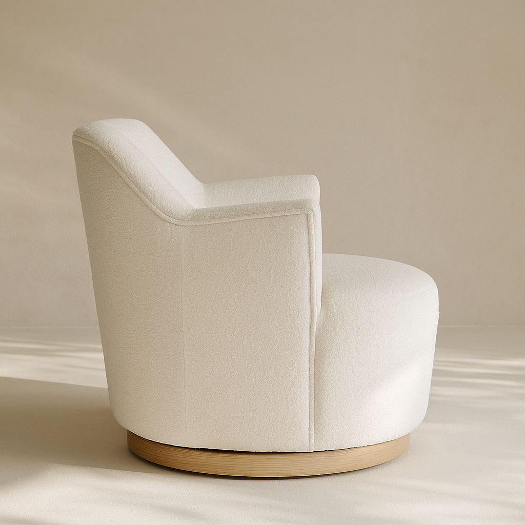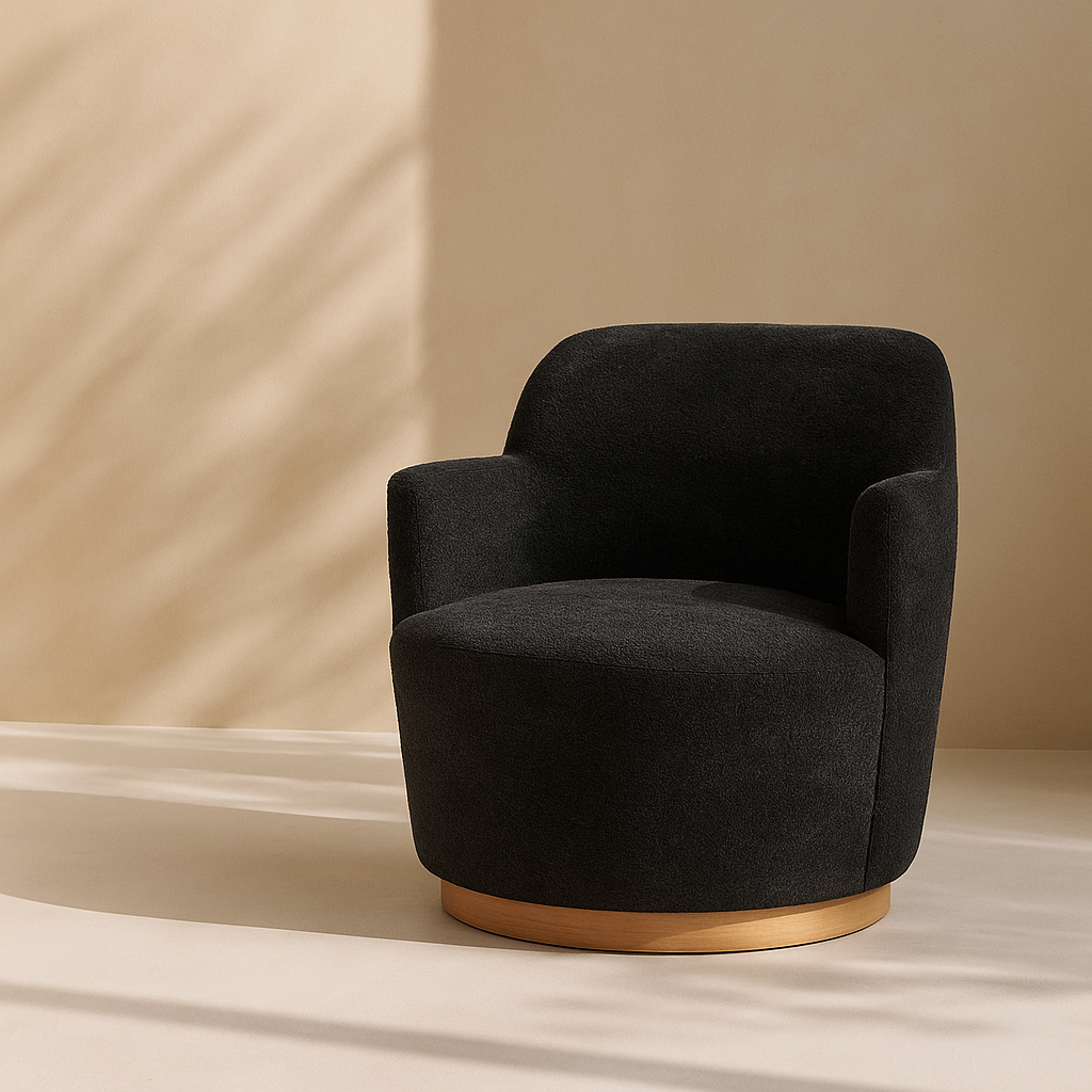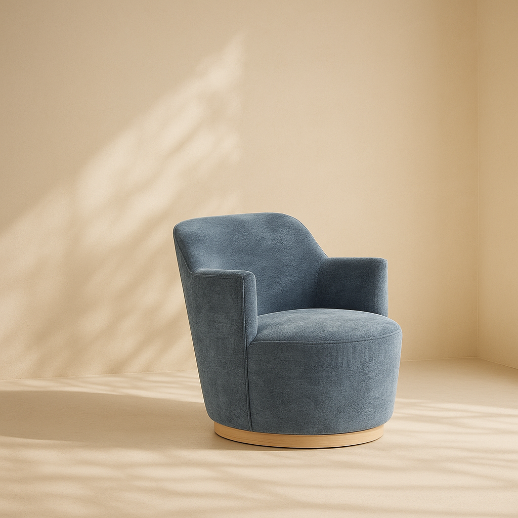 The Clarita Chenille Fabric Accent Chair brings modern charm and cozy comfort to any space with its curved silhouette and plush chenille upholstery. Designed with a smooth swivel base finished in natural wood, it offers an easy, relaxed seating experience that turns with your movement. The high back and gently flared arms provide supportive comfort, making it ideal for lounging with a book or casual conversation. The soft texture of the chenille fabric adds a layer of warmth and sophistication to the overall look. This chair’s refined form works beautifully in bedrooms, living rooms, or reading corners. It is available in five elegant colors: black, gray, light blue, mint, and cream. Dimensions: 26.5" W x 30.5" D x 31" H