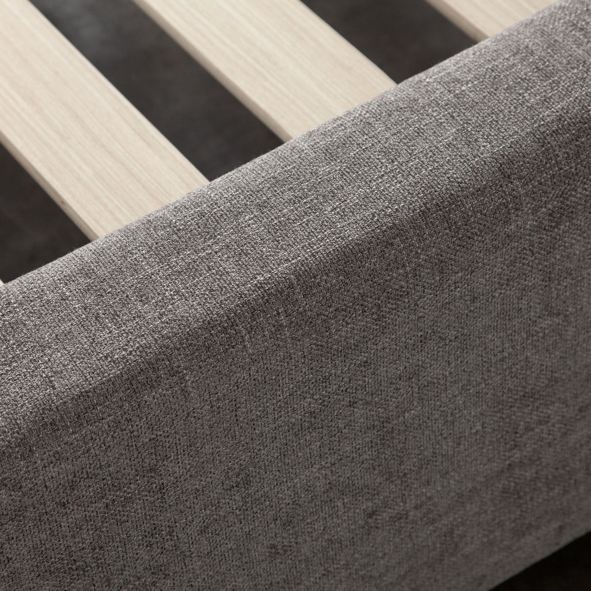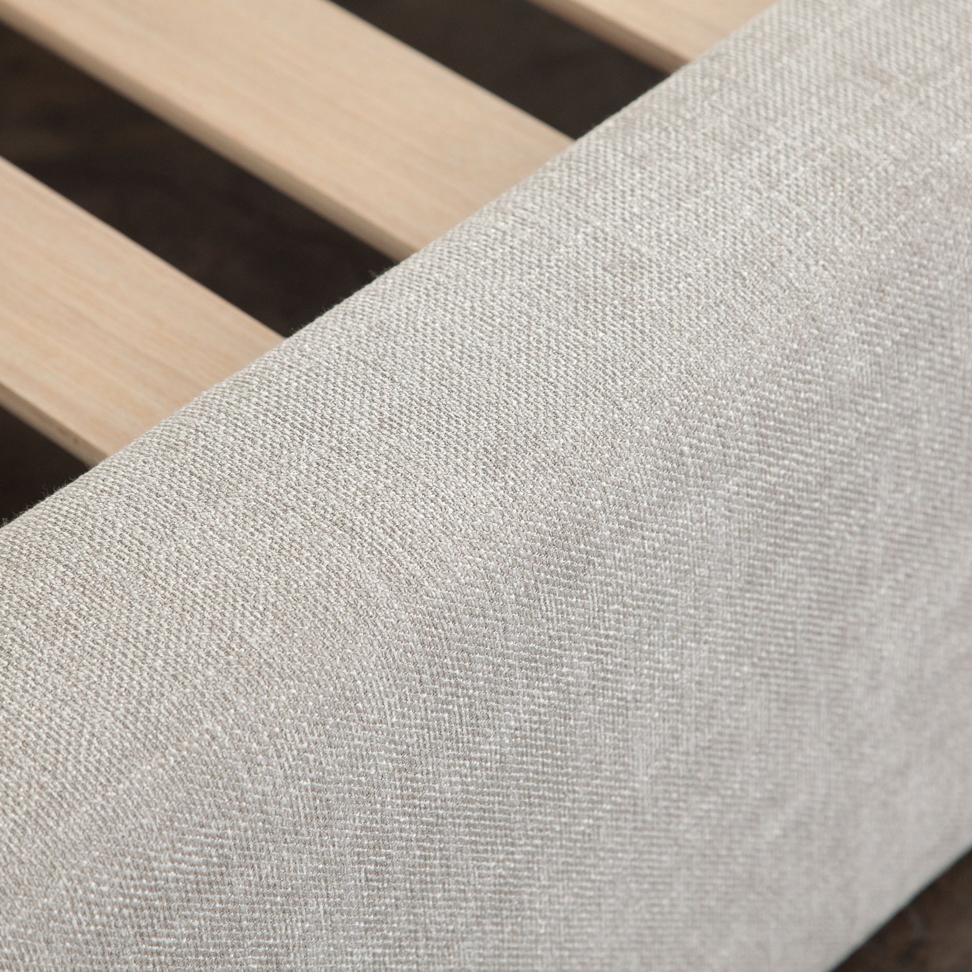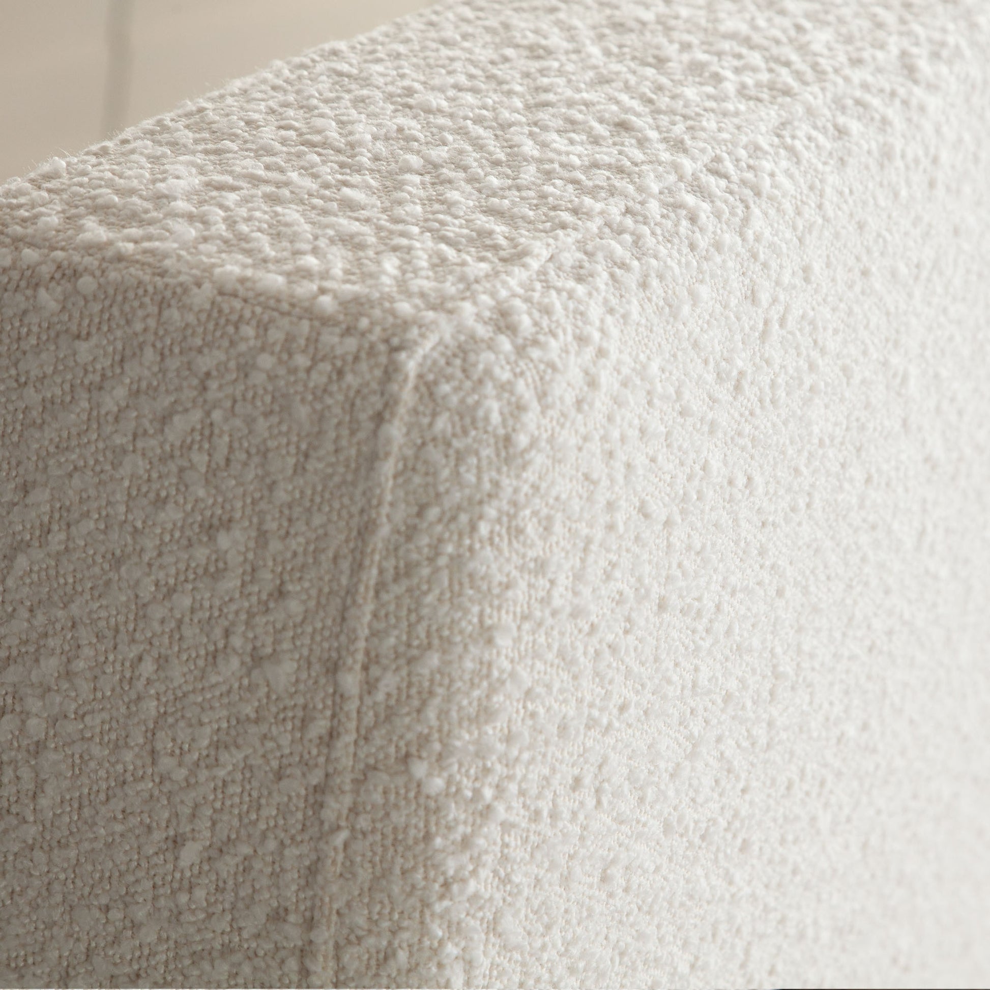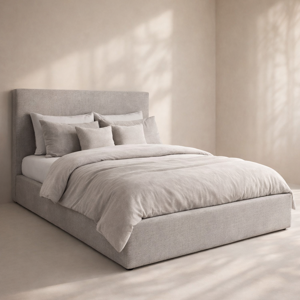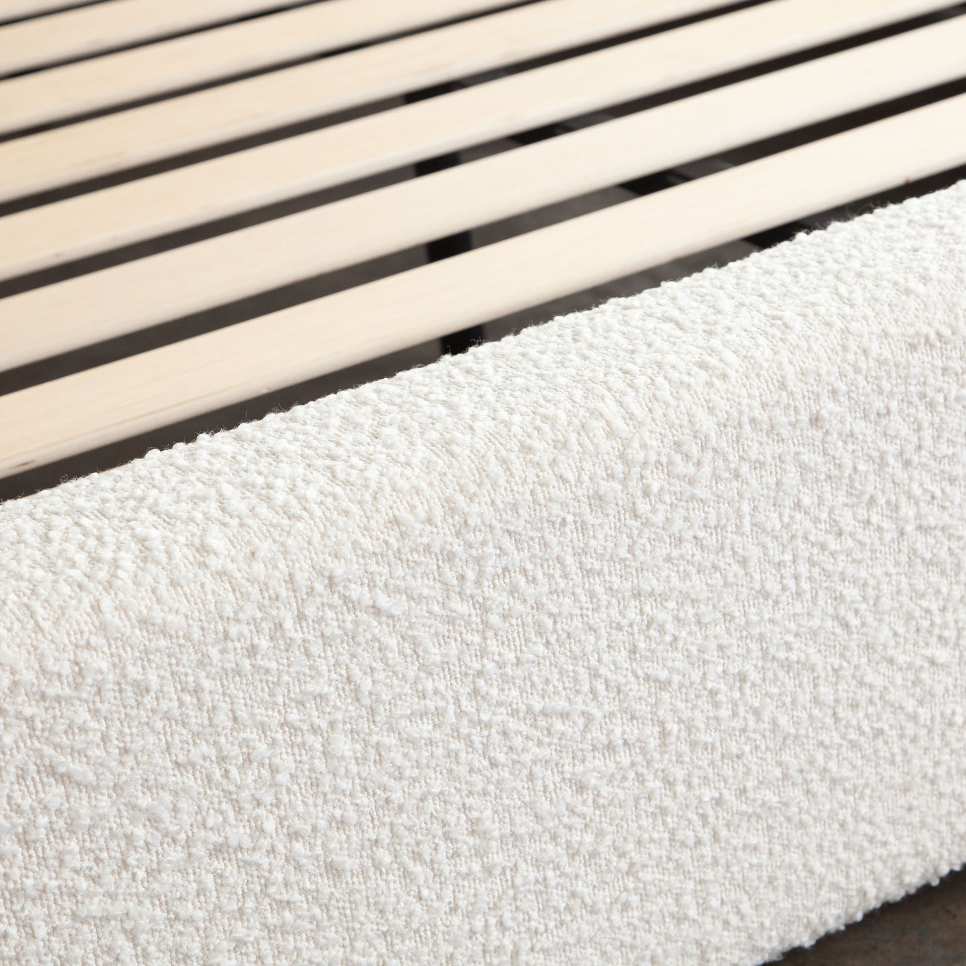 The Cloud Bed introduces a minimalist, modern profile with a fully upholstered frame wrapped in soft Gray fabric or Ivory Boucle fabric, delivering a refined yet relaxed bedroom centerpiece. Its clean lines and no-footboard silhouette create a streamlined presence, ideal for contemporary interiors. Measuring 69" and 85" in length, this platform bed features a tall, softly padded headboard and low side rails for a cozy, grounded feel. The versatile neutral tones make it easy to pair with various textures and palettes, while the solid frame supports comfort without unnecessary bulk. Boxspring required.Â