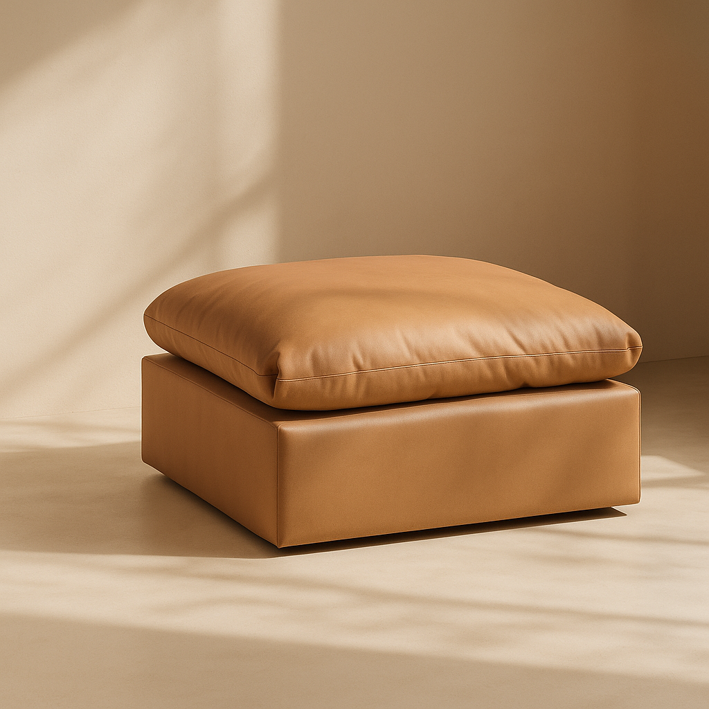The Comfy Vegan Leather Upholstered Modular Ottoman offers a sleek, modern take on relaxed comfort, making it a versatile addition to contemporary living spaces. Upholstered in smooth black vegan leather, this ottoman features an overstuffed cushion filled with plush synthetic fibre and foam, delivering a soft yet supportive seating or lounging experience. Its thick, foam-wrapped engineered wood frame enhances durability while maintaining a refined silhouette. Designed as part of the Comfy modular collection, it includes a discreet attachment system underneath, allowing it to connect effortlessly with other modular pieces for flexible configurations. With generous proportions of 39″ W × 40″ D × 20″ H, this ottoman functions seamlessly as a footrest, extra seat, or extended lounging surface, blending luxury, comfort, and adaptability in one sophisticated piece.