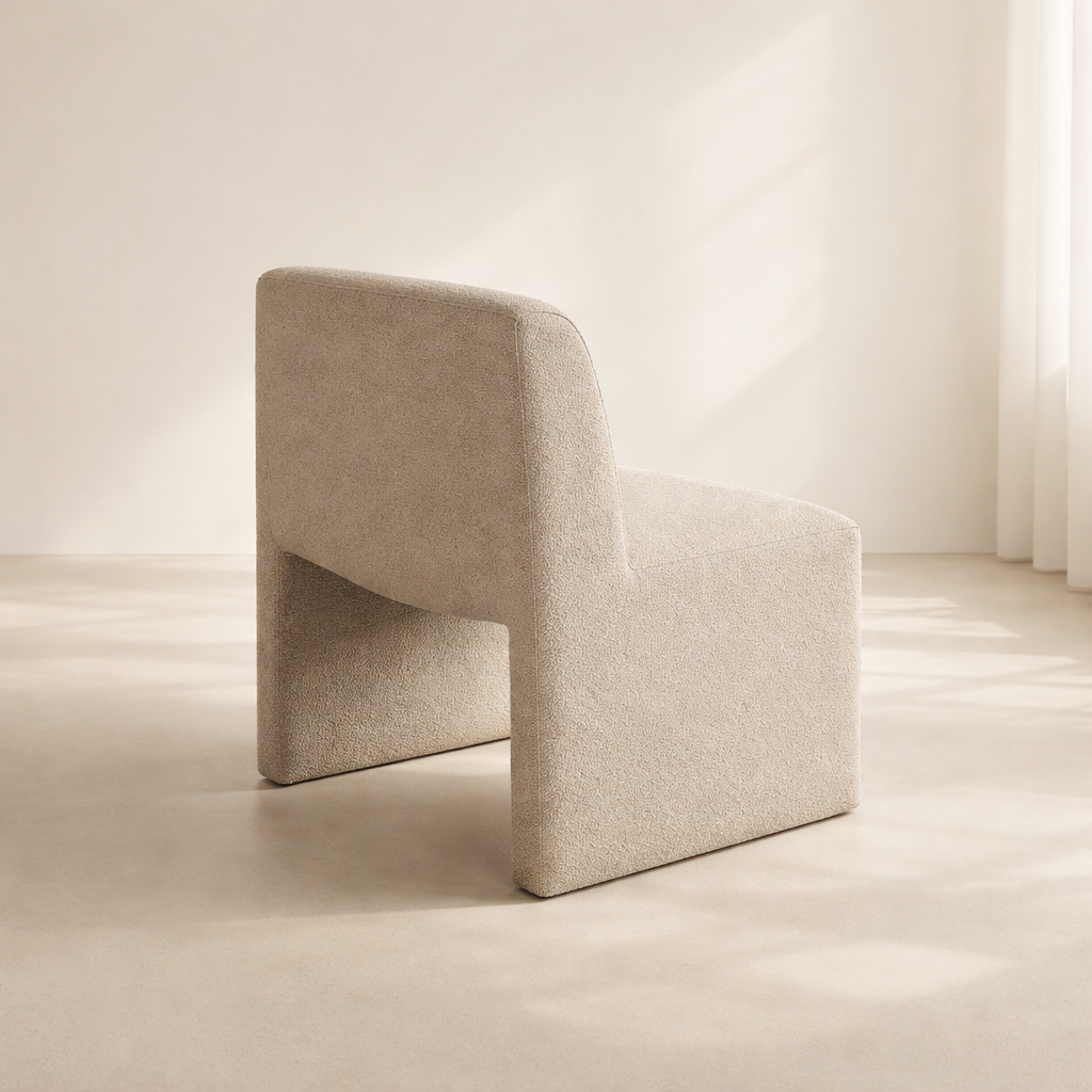 The Coral Chair is a modern dining or accent chair that brings sculptural simplicity and soft sophistication into any living space. Upholstered in a cozy Wheat Textured Fabric, this armless chair features a minimalist, monolithic silhouette with gentle curves that enhance both comfort and visual appeal. Its subtle texture and neutral tone allow it to blend effortlessly into contemporary, Scandinavian, or minimalist interiors. With dimensions of 24 x 25 x 31 inches, the Coral Chair is perfectly sized for dining rooms, home offices, or stylish lounge areas. Its streamlined form and sturdy build make it a chic and versatile seating solution that adds understated elegance to any setting.