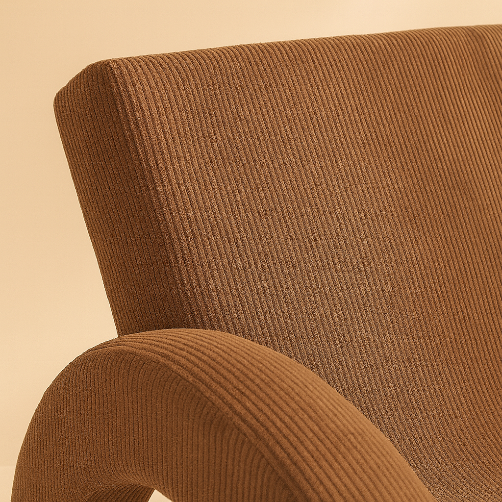 The Corduroy Accent Chair brings modern charm and soft sophistication to any space. With its bold half-rounded arms and clean lines, it delivers a sculptural presence while remaining inviting and cozy. Upholstered in plush corduroy fabric, this chair is as tactile as it is stylish, offering a luxuriously soft feel that’s perfect for everyday lounging. Its generously cushioned seat and supportive backrest ensure comfort that lasts whether you're reading, relaxing, or entertaining guests. The solid construction adds lasting durability while the unique silhouette brings a designer touch to your interior. Available in six earthy tones including Black, Cream and Brown, it pairs seamlessly with both neutral and bold color palettes. Dimensions: 29.5" W x 34.5" D x 30.5" H.