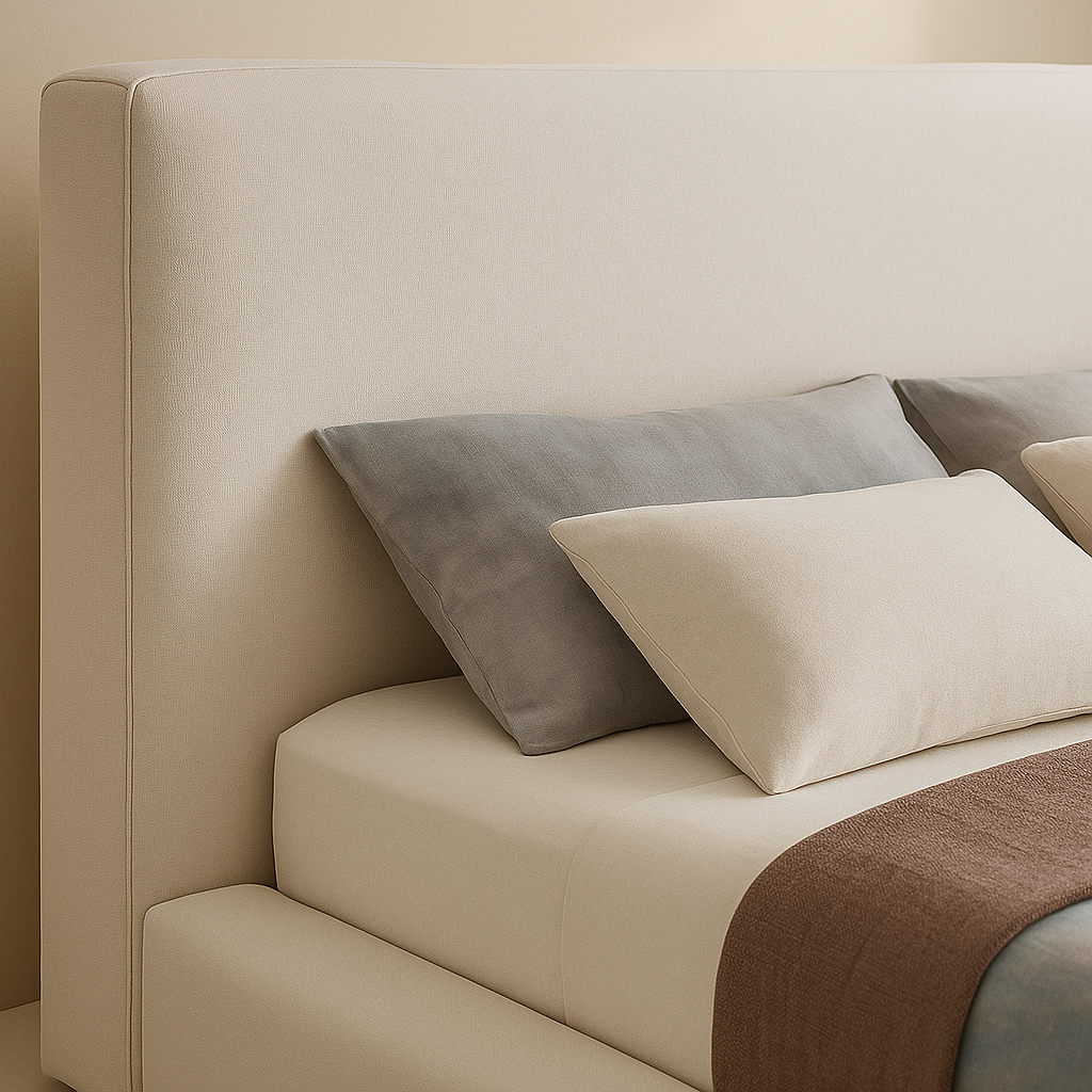 The Devin Linen Textured Fabric Upholstered Bed is designed to bring a modern, premium look to your bedroom while offering strong everyday comfort. Upholstered in linen-textured fabric and available in multiple colour options, it features a clean-lined panel headboard supported by a durable engineered wood frame, with thick upholstered side rails and a low-profile base for enhanced stability and comfort. With overall dimensions of 92.5" W x 97" D x 45" H, this bed provides generous sleeping space and a balanced headboard height for a relaxed and supportive sleeping experience. The sturdy slatted base ensures proper mattress support without the need for a box spring, while the minimalist silhouette and refined fabric texture make it a perfect fit for contemporary and upscale interiors. Customers love its plush upholstered feel, solid construction, and effortless blend of comfort and modern design.