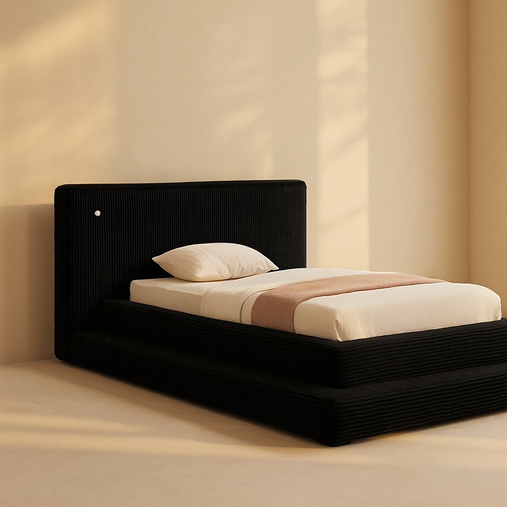 The Drew Corduroy Fabric Upholstered Bed is designed to bring a modern, premium look to your bedroom while offering strong everyday comfort. Upholstered in soft, furry-textured corduroy fabric and available in multiple colour options, it features a distinctive ribbed, fully upholstered headboard and layered platform frame supported by a durable engineered wood structure, with wide side rails and a tiered base for enhanced stability and visual depth. With overall dimensions of 103" W x 100" D x 42" H, this bed provides generous sleeping space and a low, grounded profile for a relaxed and comfortable sleeping experience. The sturdy slatted base ensures proper mattress support without the need for a box spring, while the bold texture and sculptural silhouette make it a perfect fit for contemporary and statement-driven interiors. Customers love its ultra-plush corduroy feel, solid construction, and striking blend of comfort and modern design.