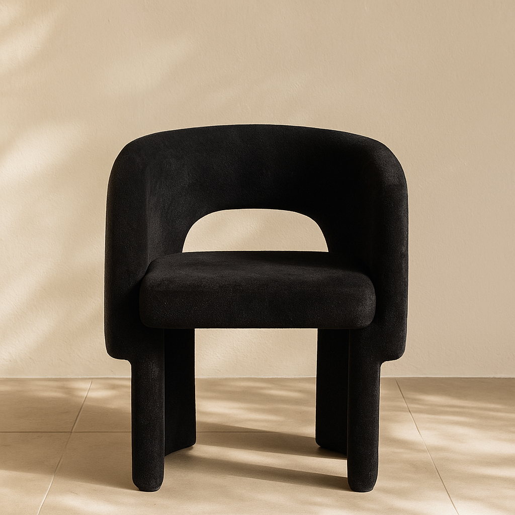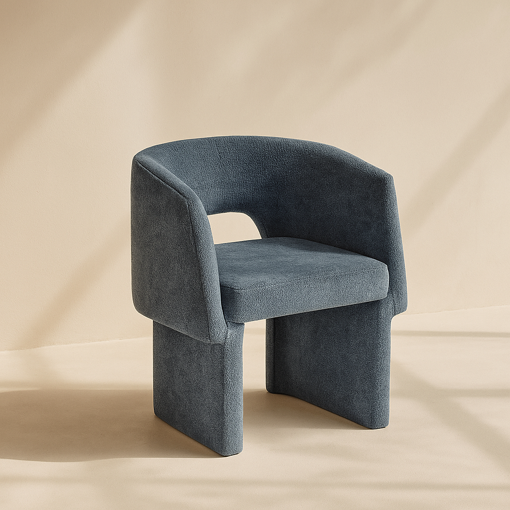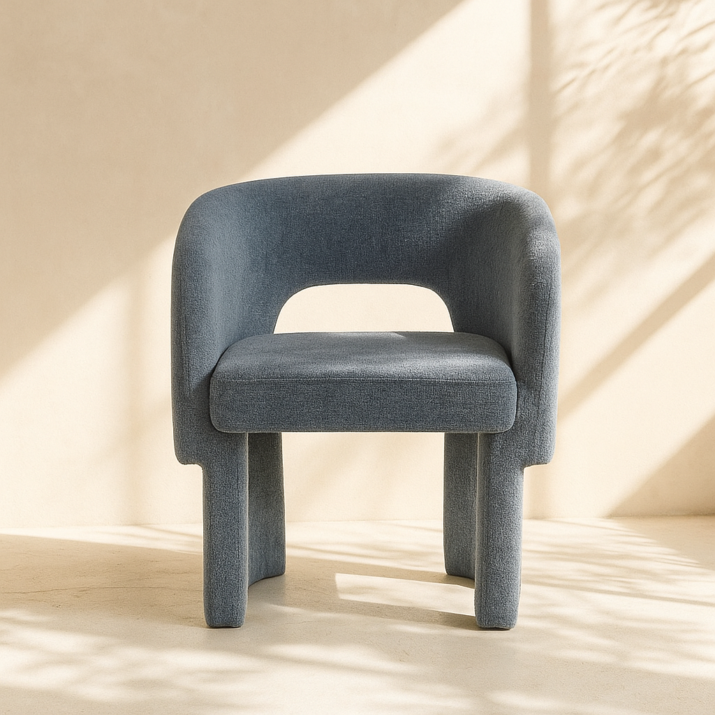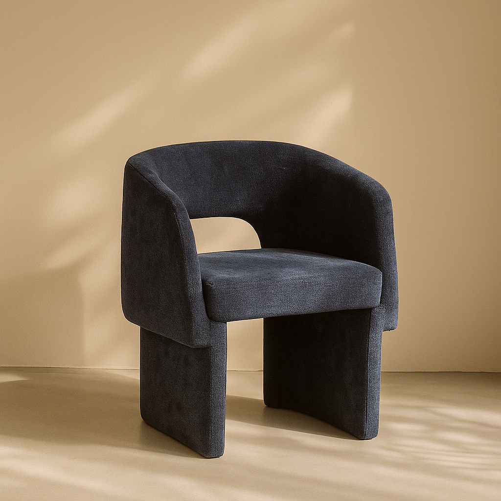 The Emmet Chenille Fabric Accent Chair brings modern elegance to any dining or lounge space with its plush upholstery and sculpted silhouette. Upholstered from top to bottom in soft chenille fabric, it provides a tactile experience that feels as luxurious as it looks. The gently curved backrest and seamless lines offer a relaxed, stylish profile while maintaining ergonomic comfort. Sturdy steel framing ensures lasting support beneath the fabric. Whether you're entertaining guests or elevating your personal space, this chair blends contemporary charm with everyday function. Available in black, grey, brown, cream, blue, light blue, green, and beige. Dimensions: 26" W x 23.5" D x 30" H.