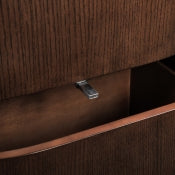 The Everett Night Stand brings modern elegance to your bedside with its smooth oak veneer and rich natural finish. Its gently curved silhouette and clean lines offer a soft, inviting presence while maintaining a minimalist edge. The raised lip detail along the top keeps essentials in place, and the two spacious drawers ensure clutter-free storage with ease. This piece is ideal for bedrooms that blend form and function with subtle flair. Available in black, brown, and natural tones, it adds a refined finish to a wide range of interiors. Dimensions: 28" W x 17.5" D x 26" H.