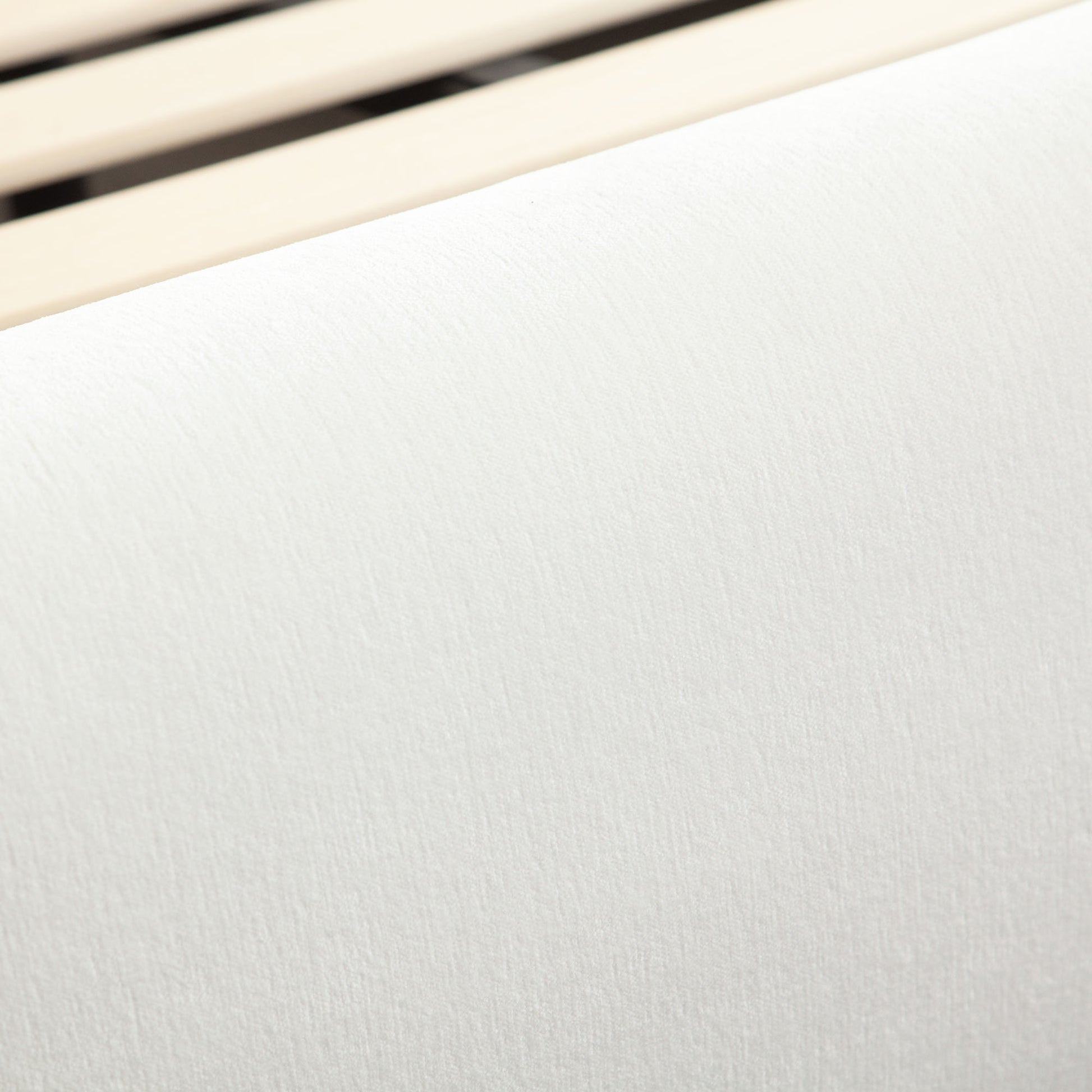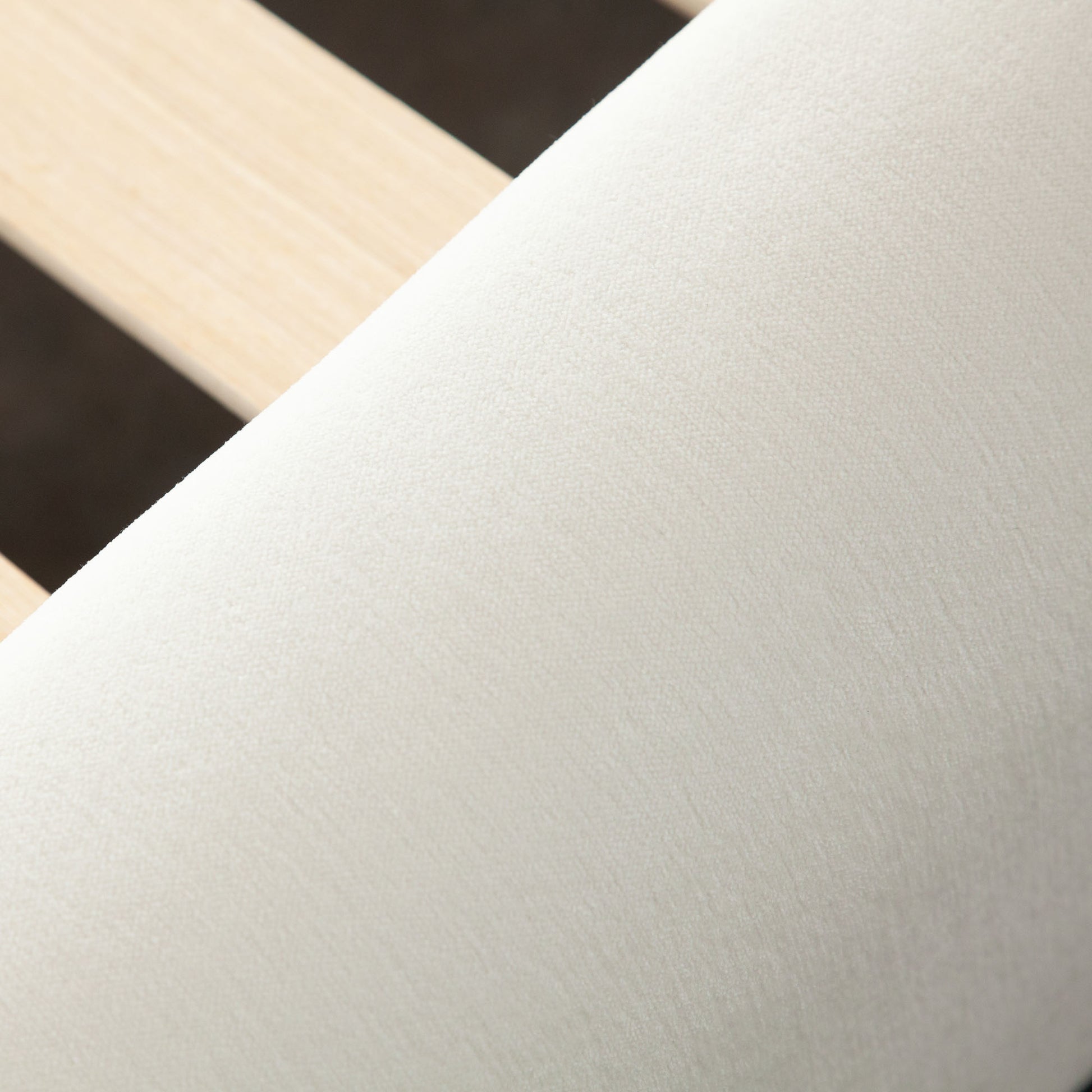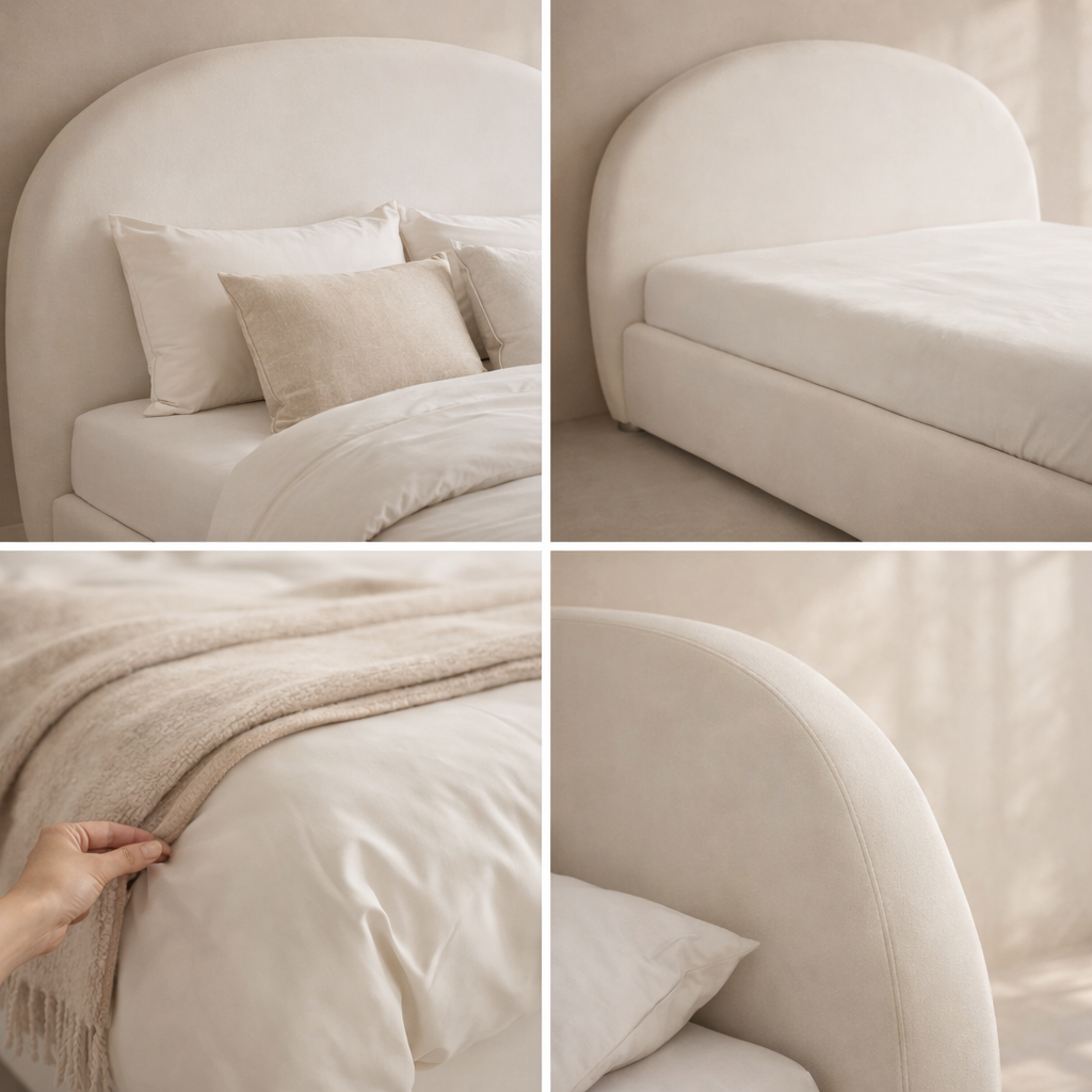 The Fox Bed is a modern upholstered platform bed designed to make a bold yet calming statement. Wrapped in rich Camel and White Performance Velvet, its smooth curves and oversized, rounded headboard create a sculptural silhouette that softens any space. Measuring 76" and 92" in length, the Fox Bed blends retro inspiration with contemporary simplicity. It pairs beautifully with natural wood tones or textured neutrals for a relaxed, earthy aesthetic. Its fully upholstered frame offers a plush, seamless look from all angles, while the low-profile base enhances the bed’s grounded and serene vibe. Includes mattress support.