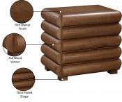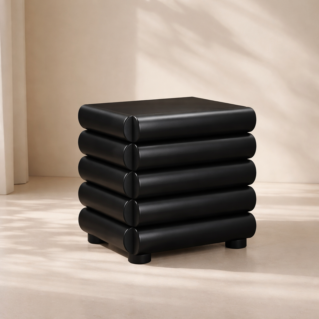 The Maverick Nightstand | Side Table brings modern sophistication into any room with its bold silhouette and rich walnut ash wood veneer finish. Its thick fluted profile and seamless drawer design create a sculptural statement, making it more than just a functional piece. Perfectly suited for bedrooms, living areas, or office spaces, it blends timeless appeal with contemporary character. Whether used to hold bedside essentials or to elevate your lounge corner, this piece delivers elegance and utility in equal measure. Its smooth surface is ideal for styling with a lamp, décor, or books. Available in black, brown, and natural to suit any interior palette. Dimensions: 26"W x 18"D x 24.5"H