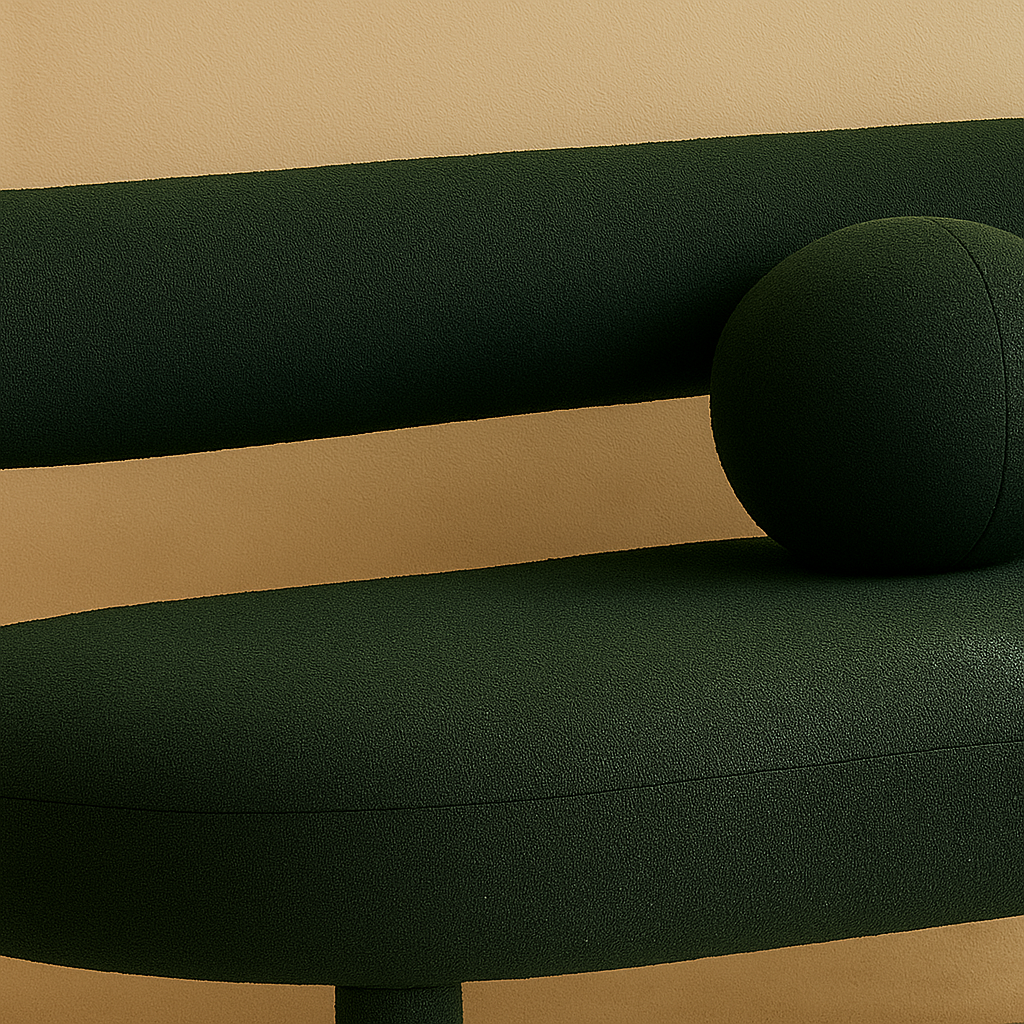 The Parlor Boucle Fabric Bench brings modern sculptural charm with comforting texture to any space. Designed to cradle the back and body, this bench features a rounded backrest, a matching circular cushion, and a curved seat for a cozy, inviting experience. Wrapped in soft boucle fabric, it offers a rich tactile feel that enhances its visual warmth. Its solid eucalyptus wood frame ensures durability, while the contemporary silhouette adds a sophisticated touch to foyers, bedrooms, or entryways. Available in black, gray, cream, and green. Dimensions: 59" W x 26" D x 28.5" H.