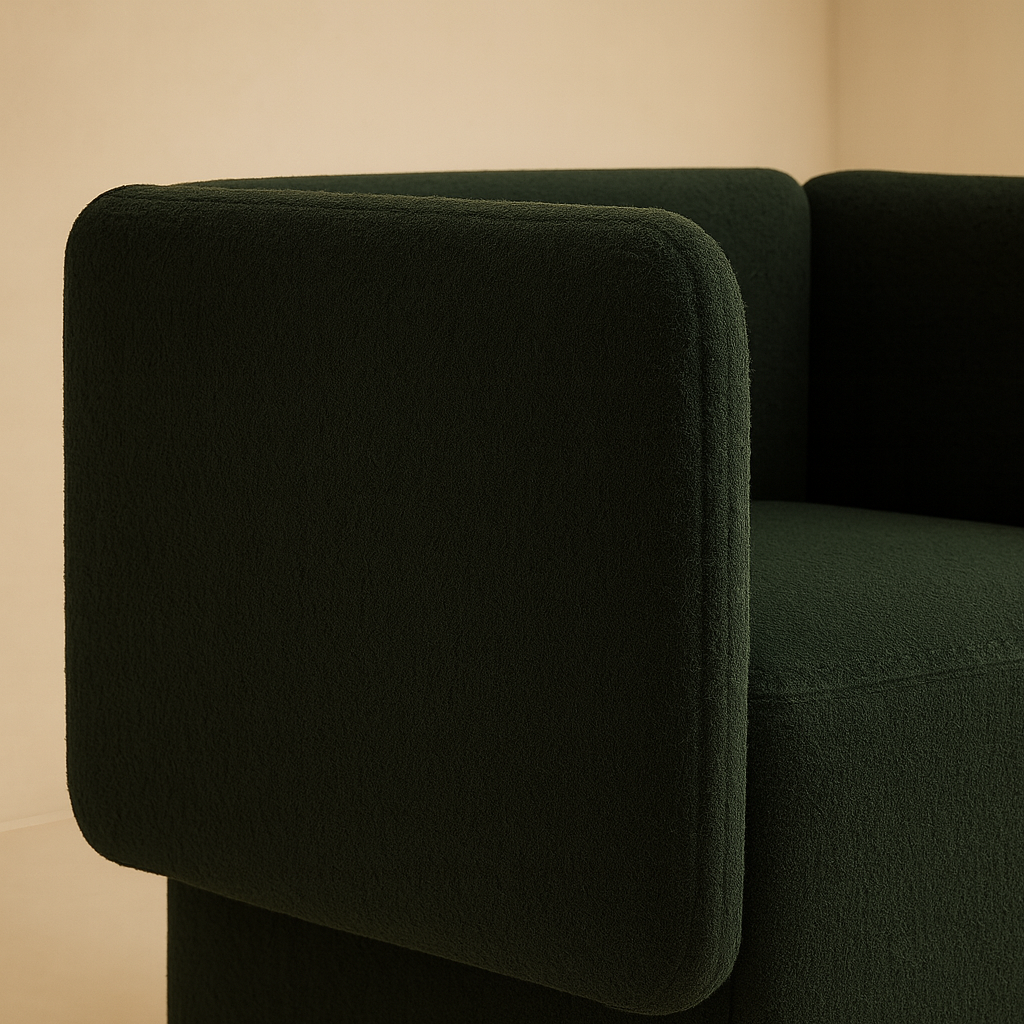 The Vera Bouclé Chair is designed to make a subtle yet striking statement. Its clean, architectural silhouette is wrapped in a richly textured bouclé fabric, offering depth, warmth, and tactile appeal. The gently curved back and generously cushioned seat provide inviting comfort while maintaining a polished, minimalist profile.