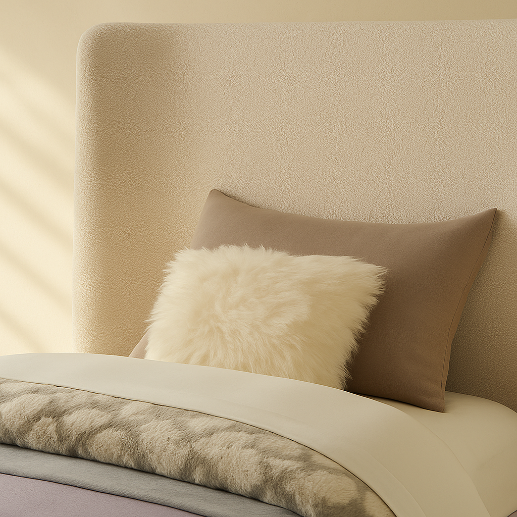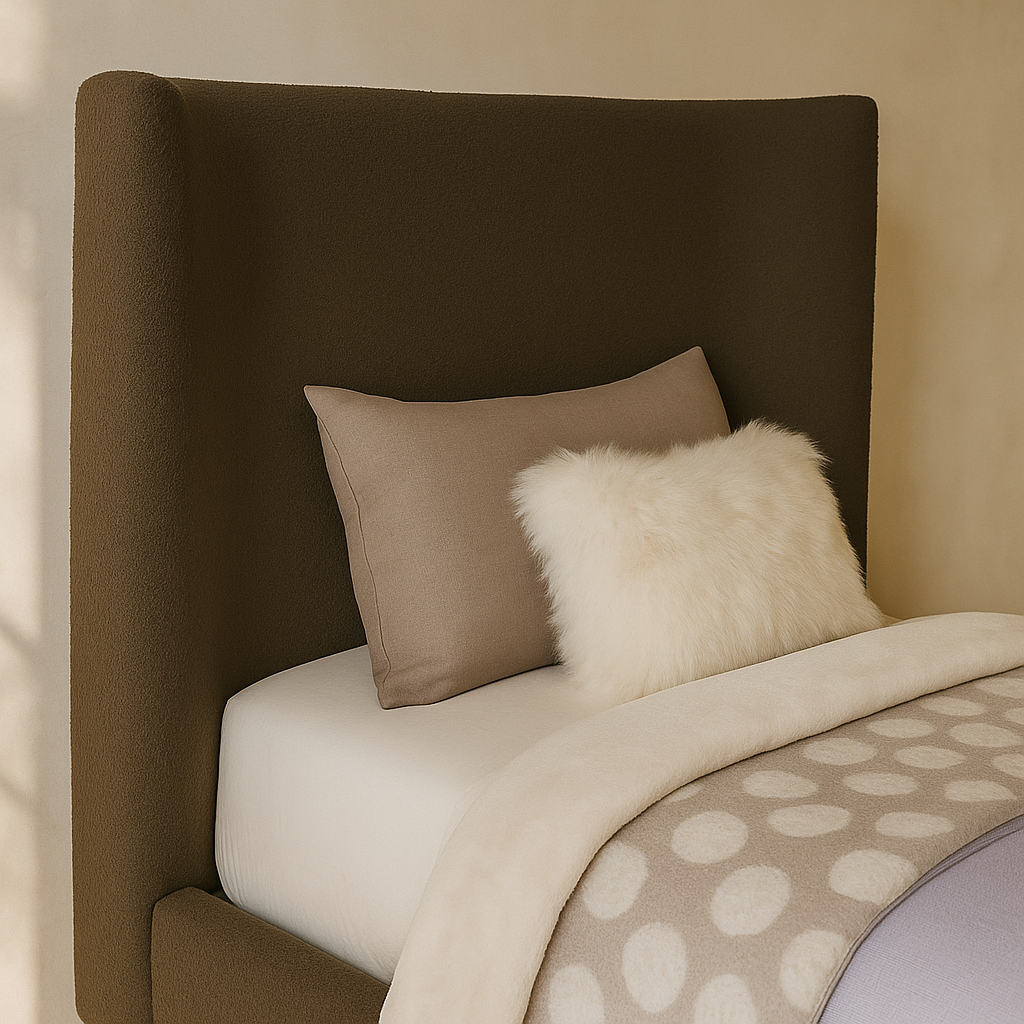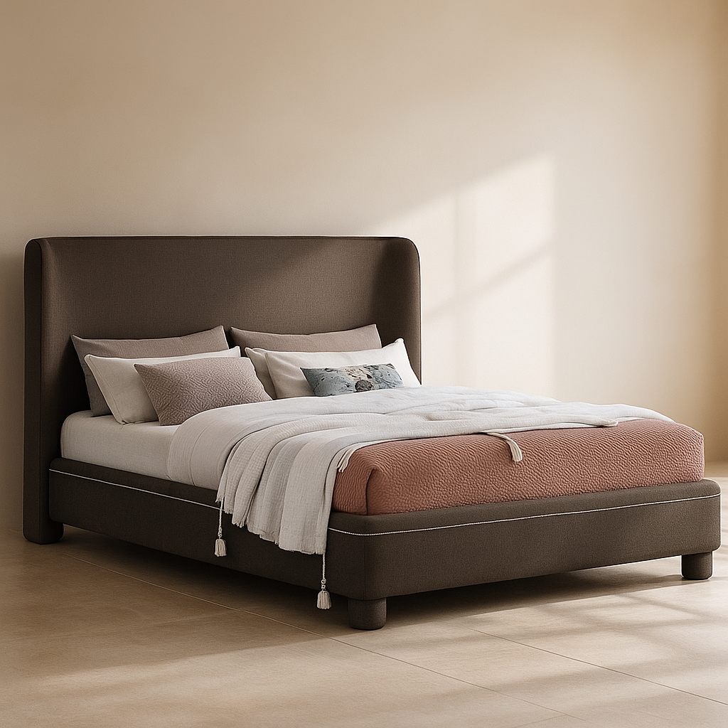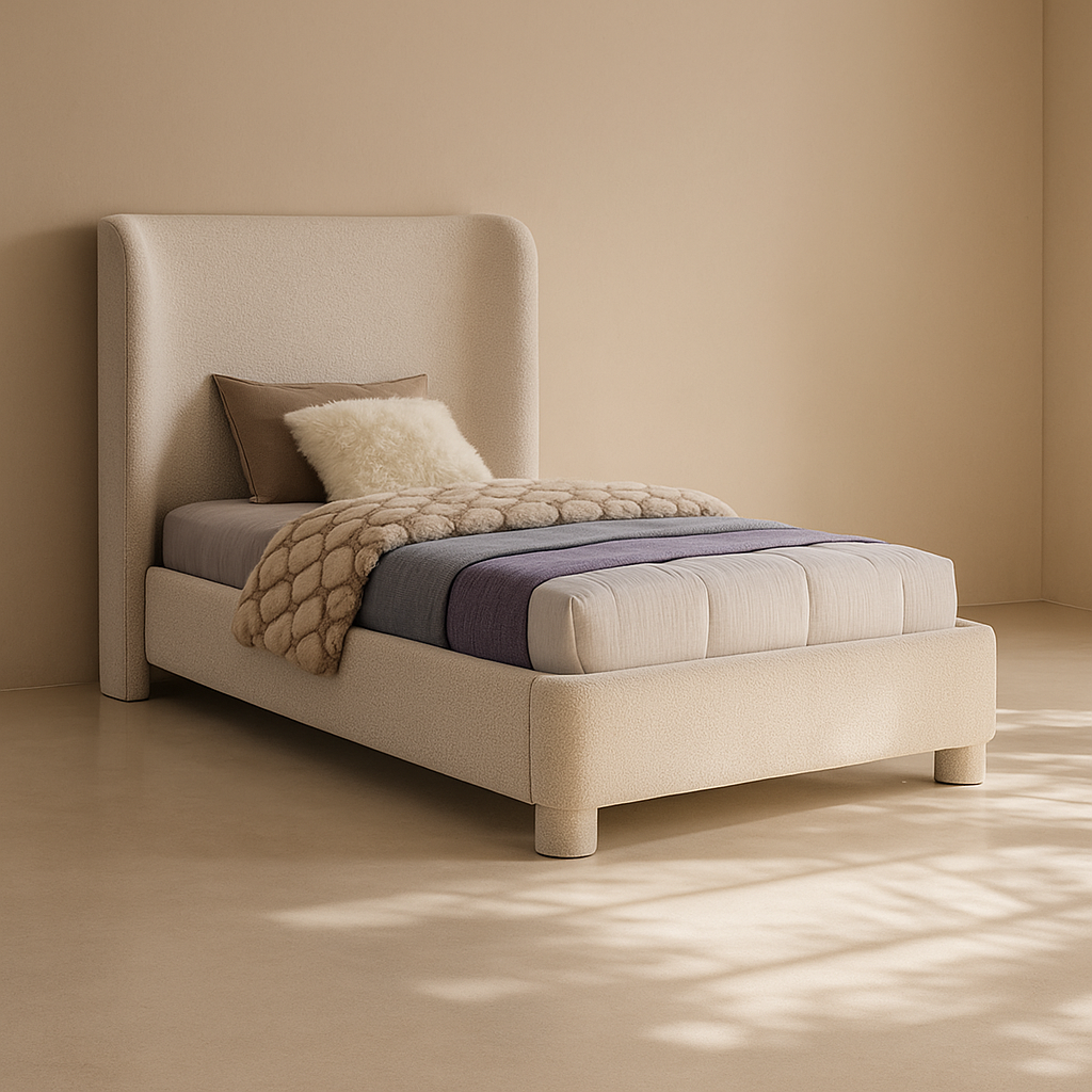 The Penny Boucle Fabric Upholstered Bed is designed to bring a soft, inviting presence to your bedroom while offering reliable comfort and modern support. Upholstered in plush boucle fabric and available in multiple colour options, this bed features a gently curved headboard that adds a refined, sculptural touch and enhances back support when relaxing in bed. Built on a sturdy engineered wood and plywood frame with a fully slatted base, it provides excellent mattress support without the need for a box spring. With overall dimensions of 87" W x 88" D x 52" H, the Penny bed delivers a generously sized sleeping area paired with a balanced, contemporary profile. Its cozy fabric texture, smooth curves, and solid construction make it a standout choice for modern interiors, while customers appreciate its comfortable feel, stable build, and effortless blend of style, comfort, and everyday functionality.
