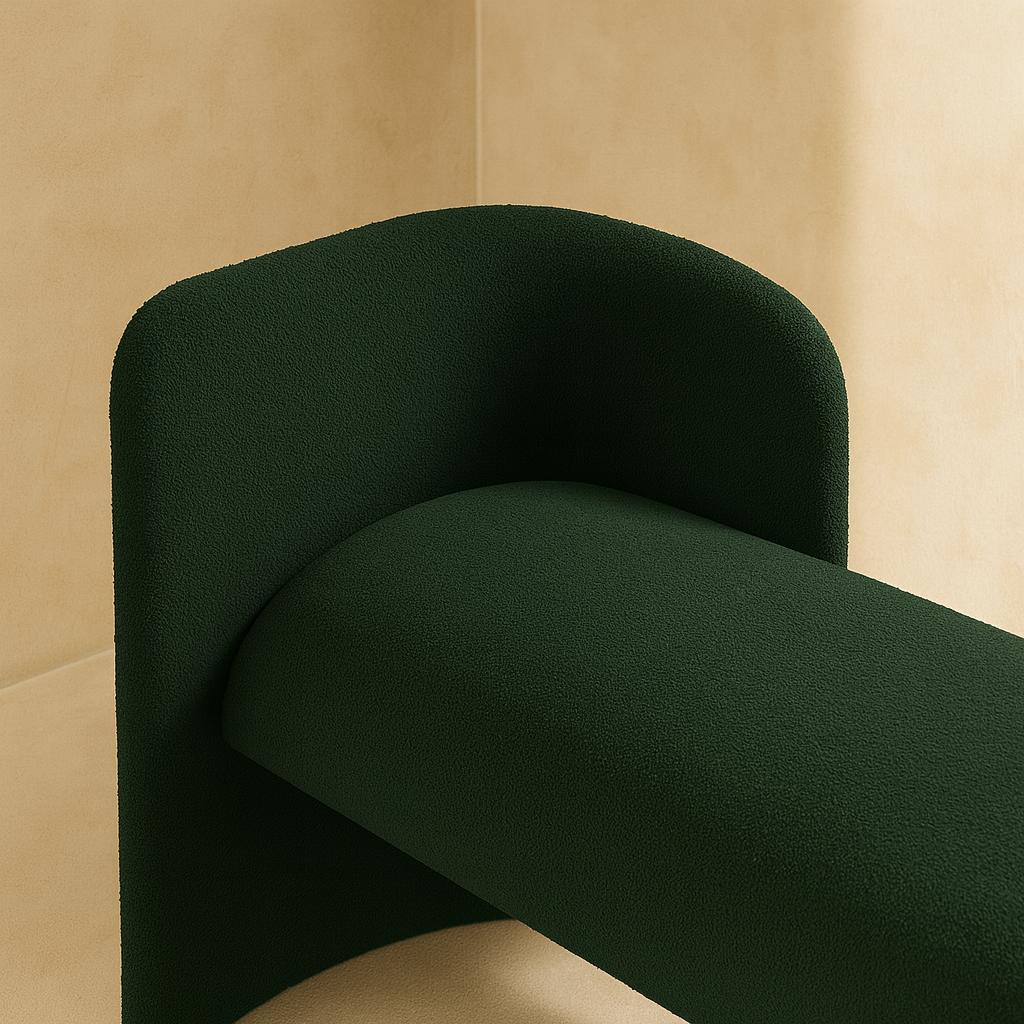 The Peyton Boucle Fabric Bench brings modern versatility to your living space, offering a chic seating solution with understated elegance. Its rounded arm design adds a soft, sculptural element, making it ideal for placement at the foot of a bed, in an entryway, or anywhere you need extra seating with a touch of style. Wrapped in rich cream boucle fabric, this bench delivers both comfort and textural appeal, while its sturdy construction ensures durability for years of use. The neutral color palette allows it to blend effortlessly into a variety of decor themes, from contemporary to minimalist interiors. Available in black, gray, cream, and green. Dimensions : 52.5"W X 21"D X 22"H.