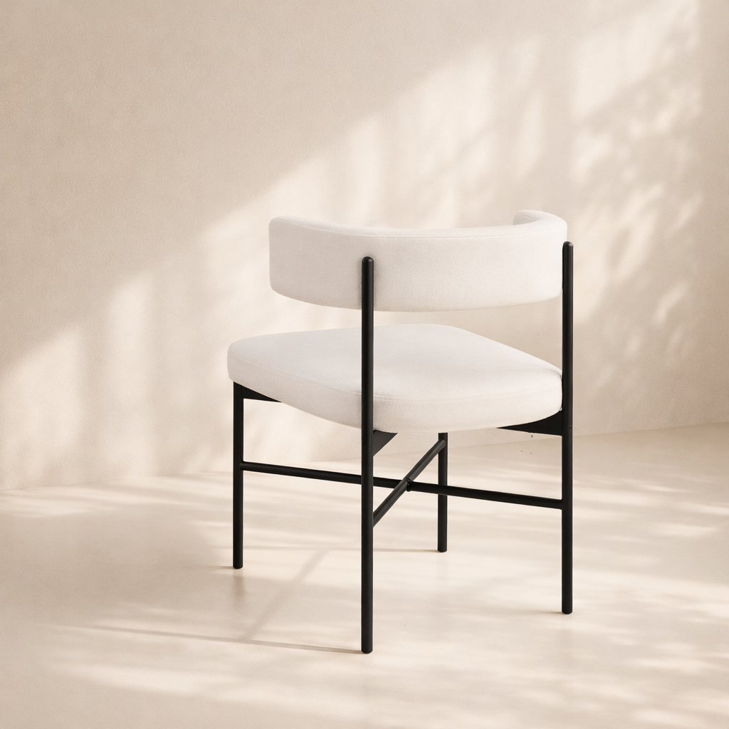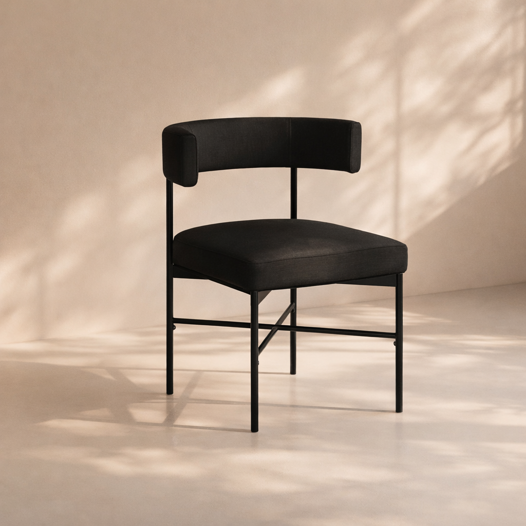 The Rivage Linen Textured Fabric Upholstered Dining Chair balances sculptural simplicity with everyday comfort. Upholstered in a refined, neutral-toned linen, the gently curved backrest wraps subtly around the body, offering supportive comfort without overwhelming the silhouette. The plush, generously padded seat enhances the sitting experience while maintaining a sleek, tailored profile.Available in Navy, Cream, black, beige, and Gray. Dimensions: 22" W x 21" D x 29.5" H.