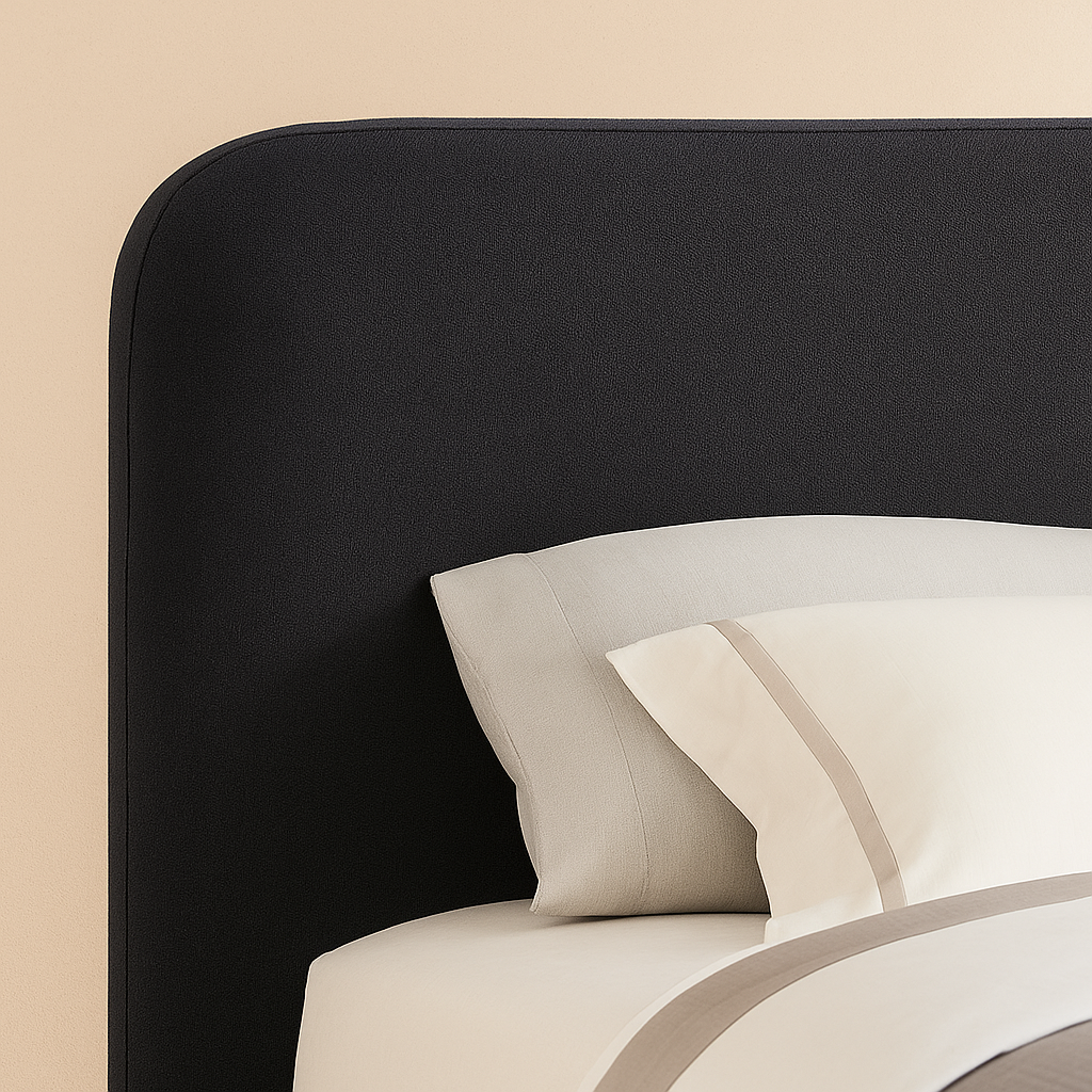 The Rigby Boucle Fabric Upholstered Bed brings refined Art Deco elegance and modern comfort together to create a sophisticated focal point for your bedroom. Upholstered in rich boucle fabric and available in multiple colour options, this bed features a low-profile silhouette with a softly contoured headboard that adds understated texture and warmth to the overall design. The natural finished base enhances its grounded, architectural look while complementing a wide range of interior styles. Constructed with a durable blend of rubberwood, MDF, plywood, and foam, and finished with a fully slatted base, the Rigby bed offers reliable mattress support without the need for a box spring. With overall dimensions of 86" W x 90" D x 45" H, it provides a balanced, spacious sleeping area paired with a clean, elegant profile. Its plush boucle upholstery, sturdy construction, and timeless Art Deco influence make the Rigby bed a versatile and stylish choice for bedrooms that prioritise comfort, craftsmanship, and elevated design.