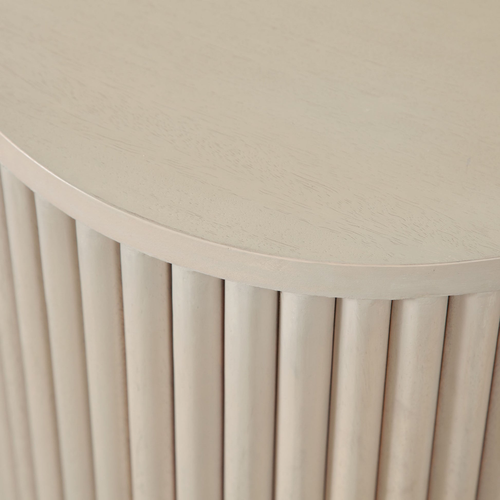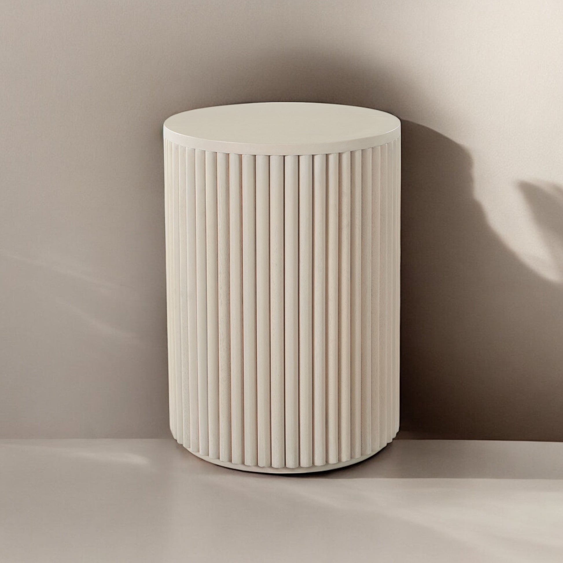 The Siren Table is a statement of modern elegance with a sleek, minimalist design. Crafted with a solid wood frame in a light natural finish, it features a fluted base that adds texture and depth while maintaining a clean, refined look. Available in 18"x 18"x24" in diameter, it offers versatility for both spacious and compact living areas. With its neutral tones and timeless appeal, the Siren Table seamlessly blends into modern, coastal, or organic interiors, creating a warm and inviting centerpiece.