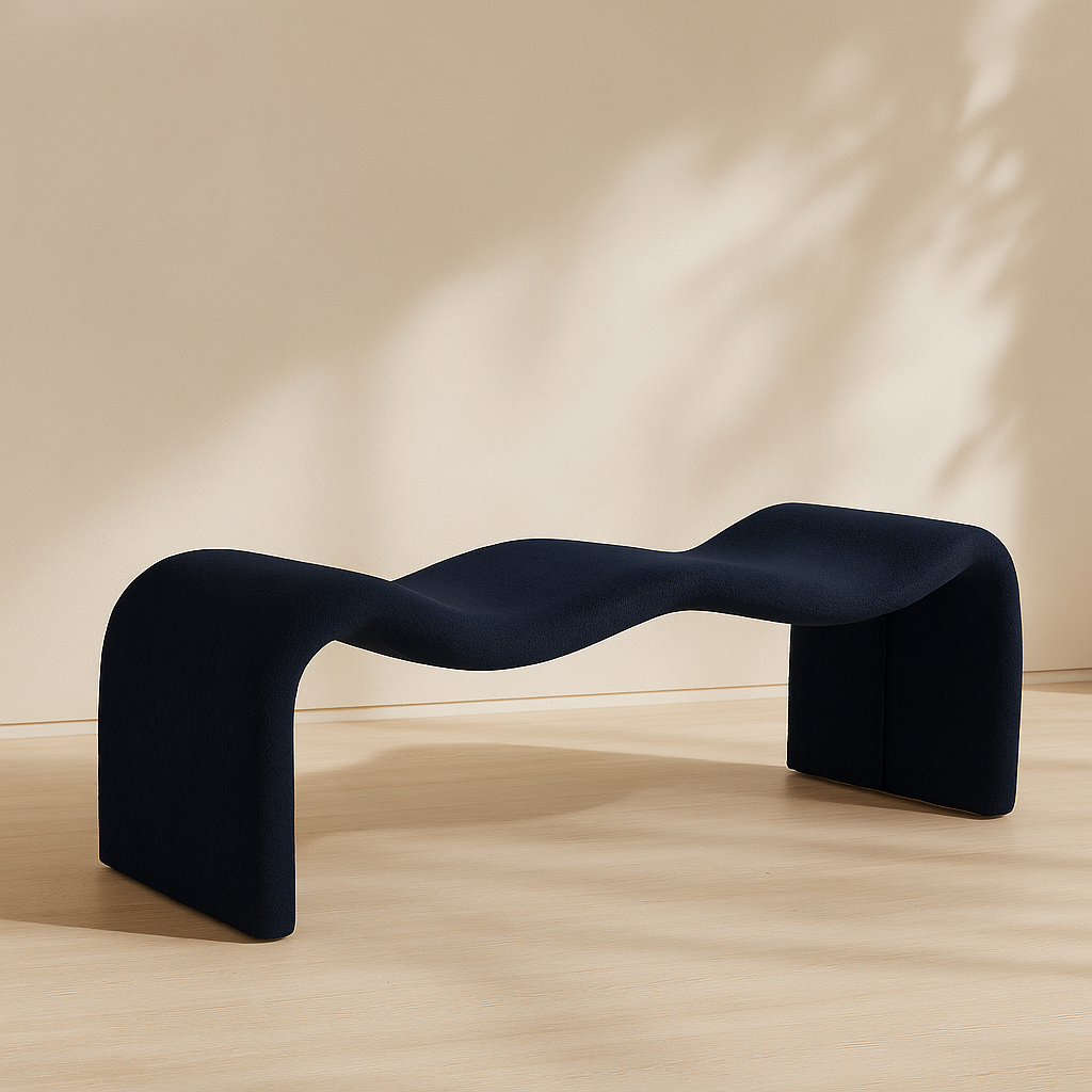 The Willow Chenille Fabric Bench brings artistic flair and modern charm to any space in your home. Wrapped entirely in plush chenille, this sculptural bench features a soft, curving silhouette that creates a striking presence while offering cozy seating. Its contemporary form is balanced by a sturdy metal inner frame, ensuring lasting durability without compromising on style. Ideal for entryways, living rooms, or bedrooms, this versatile piece provides both functionality and a sense of refined design. Available in ten rich color options including green, cognac, saddle, black, cream, gray, blue, mint, brown, and beige. Dimensions: 56.5" W x 18" D x 19" H